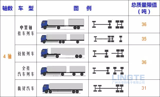2、除驅(qū)動軸外,下文中的二軸組、三軸組以及半掛車和全掛車,每減少兩個輪胎,其總質(zhì)量限值減少3噸。